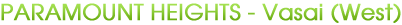 Paramount Heights is strategically situated to ensure comfort, convenience and connectivity. Located in Vasai West - Paramount Heights offers its residents the privilege of living in the heart of the city with close proximity to shopping malls, schools, colleges, hospitals and places of worship. |